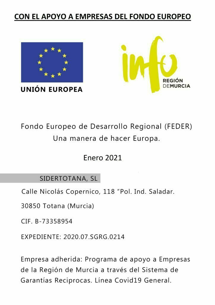 En verano de 2017, nos establecimos en el polígono industrial del Saladar en Totana, ampliamos nuestras instalaciones hasta los 1.000 m2,  nuestra flota de camiones y doblamos la plantilla. A día de hoy, hemos de seguir agradeciendo tanto a nuestros clientes como a la gran familia que forma Sidertotana, la confianza y el esfuerzo depositado en la empresa, tanto es así que volvemos a tener en proyecto a muy corto plazo el cambio a unas instalaciones de mayor tamaño dentro del mismo polígono industrial, ampliando los medios existentes y muy probablemente aumento del personal.